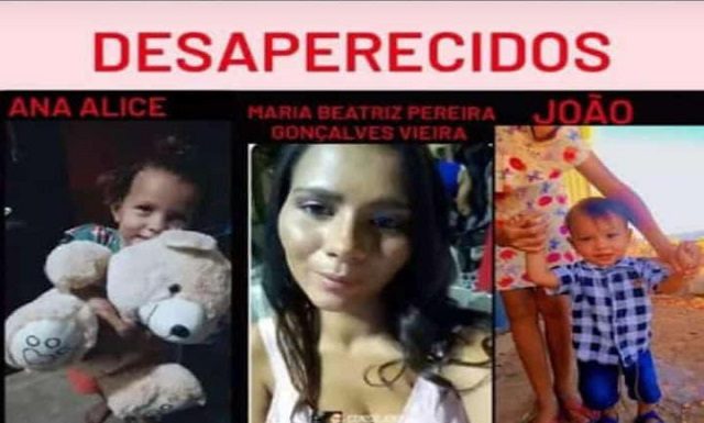 Maria Beatriz e seus filhos, Ana Alice e João, estão desaparecidos desde o dia 7 de outubro, a mãe e seus filhos são residentes de Juazeiro-BA.