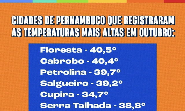 Confira as cidades pernambucanas que registraram as temperaturas mais altas em outubro: