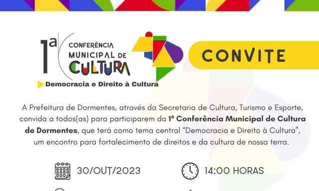 A Prefeitura de Dormentes, por meio da Secretaria de Cultura, Turismo e Esporte, realiza na próxima segunda-feira (30) a 1ª Conferência Municipal de Cultura, com o tema “Democracia e direito à cultura” . O encontro vai acontecer no Centro de Convivência do Idoso, a partir das 14h e será aberto para a toda a comunidade, em especial artistas, produtores...