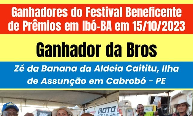 Tico Brasilino da Cohab Nova em Terra Nova-PE foi o grande ganhador da Pop 100 e Zé da Banana da Aldeia Caititu, Ilha de Assunção em Cabrobó-PE ganhou a Bros. Além dos ganhadores das...