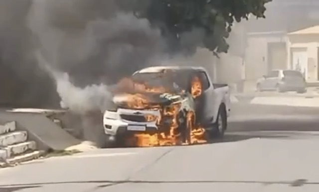 No final da tarde desta sexta-feira (13), um veículo Chevrolet S10, pegou fogo no centro de Ouricuri, sertão do Araripe de Pernambuco.