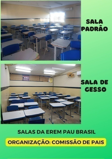 Com o tamanho e a estrutura de gesso e Brasilit, proporciona um ambiente muito quente e desfavorável aprendizagem. Além das mesmas não terem estruturas físicas adequadas para estudo e aprendizagem.