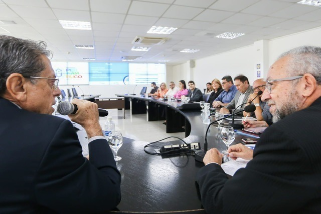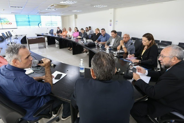 O encontro aconteceu na sala de monitoramento da Secretaria de Planejamento e Gestão de Pernambuco – Seplag e foi conduzida pelo Secretário de Recursos Hídricos e Saneamento de Pernambuco, Almir Cirilo e a presidente da Agência Pernambucana de Águas e Clima – Apac, Suzana Montenegro.
