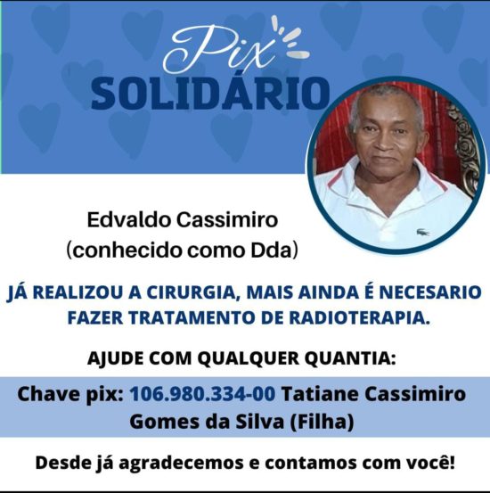 Pix Solidário em favor de Edvaldo Cassimiro da Fazenda Mãe Rosa em Cabrobó