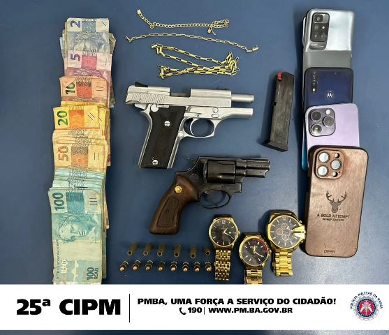 A Polícia Militar da Bahia (PMBA), através da 25ª Companhia Independente de Polícia Militar (CIPM) / Casa Nova, comandada pelo Major PM Lizandro, subordinada ao Comando de Policiamento da Região Norte (CPR-N), comandado pelo Coronel PM Valter Araújo, alinhado às diretrizes estratégicas do Excelentissímo Senhor Comandante-Geral, Coronel PM Coutinho, realizou com apoio da RONDESP-Norte, nesta terça-feira (03), por volta das 22:20, na BR 235, no trecho de entrada do município de Casa Nova, a prisão de quatro indivíduos que horas antes, haviam cometido um roubo no Distrito de Piçarrão, em Sento Sé.