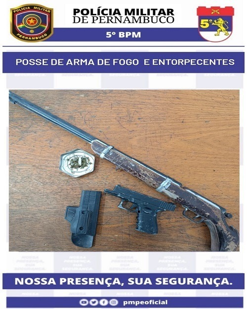 Nesta sexta-feira (01), durante a OPERAÇÃO PAZ e ANFISBENA, por volta das 11h30, no Bairro Dom Avelar, em Petrolina, após troca de informações entre as equipes do Malhas da Lei/5° BPM, NI-26, Operação ARGOS-I, Paz e PERNAMBUCO SEGURO, acerca da entrega de armamento em uma borracharia, diante das informações, as equipes RONDESC ALFA e RONDESC BRAVO fizeram deslocamento até o local onde prenderam um indivíduo com o seguinte material: