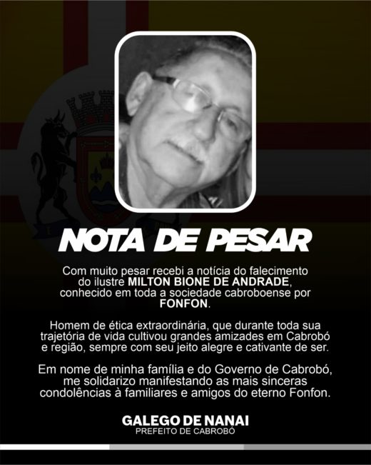 Em nome de minha família e do Governo de Cabrobó, me solidarizo manifestando as mais sinceras condolências à familiares e amigos do eterno Fonfon.