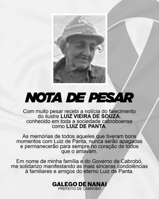 Em nome de minha família e do Governo de Cabrobó, me solidarizo manifestando as mais sinceras condolências à familiares e amigos do eterno Luiz de Panta.