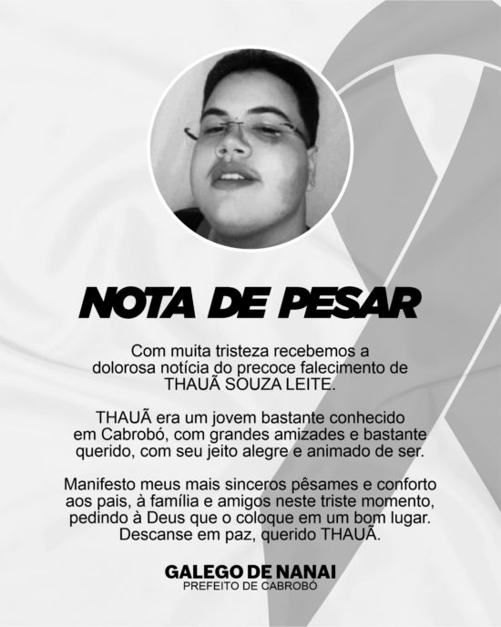 Prefeito de Cabrobó emite Nota de Pesar pelo falecimento do jovem Thauã Souza Leite