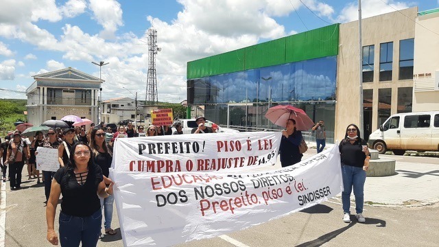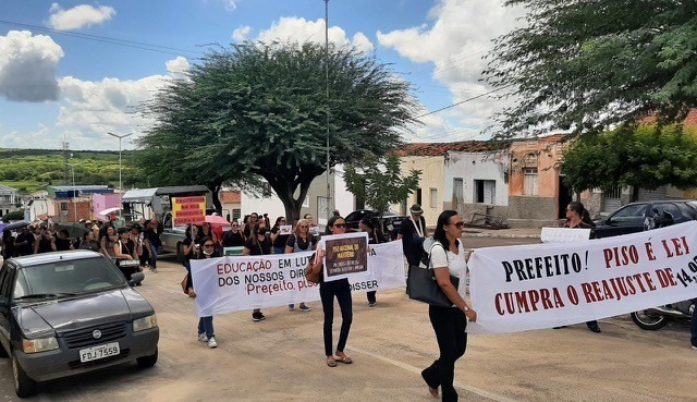 Os professores de Serrita realizaram nesta sexta-feira (31/03), um novo protesto reivindicando o aumento que o Governo Federal atribuiu em 1° de janeiro.