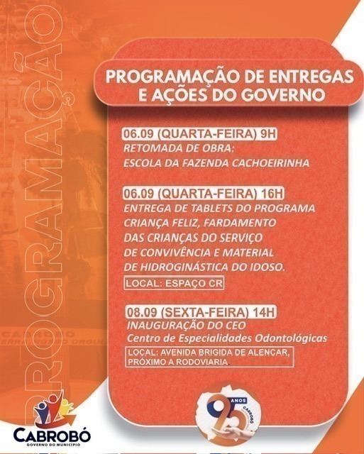 O Governo de Cabrobó, preparou uma agenda extensa de entrega e ações em comemoração aos 95 anos de reemancipação político-administrativa do município.