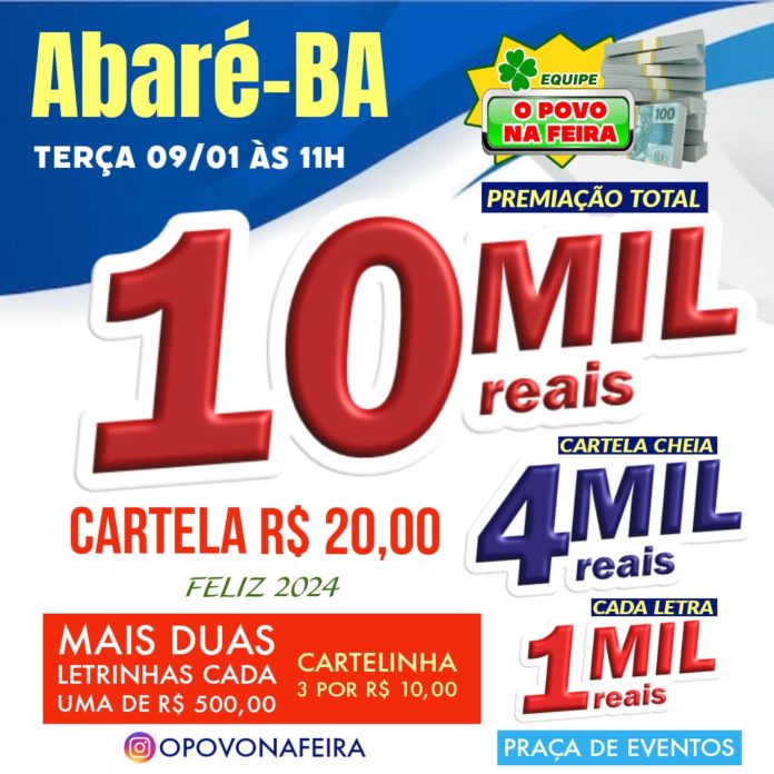 Você tem um encontro marcado às 11h da próxima terça-feira (09/01) na Praça de Eventos em Abaré-BA. O Povo na Feira tem uma premiação que você não pode perder, são R$ 10 mil reais em prêmios!