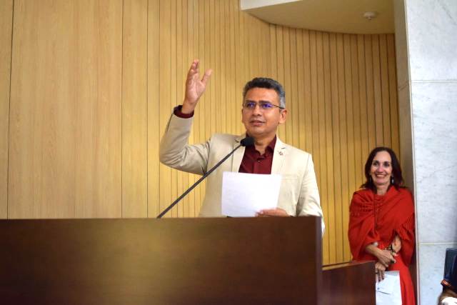 Em seu discurso, o novo presidente afirmou que tem clareza dos enormes desafios que tem pela frente para contribuir na defesa da democracia e no combate à destruição do Estado e das políticas públicas que promovem igualdade de direitos. “Recebo essa missão com humildade, entusiasmo e coragem. A minha confiança está apoiada na certeza de que não estou tomando posse sozinho, mas de que tenho homens e mulheres de força comigo“, destacou.