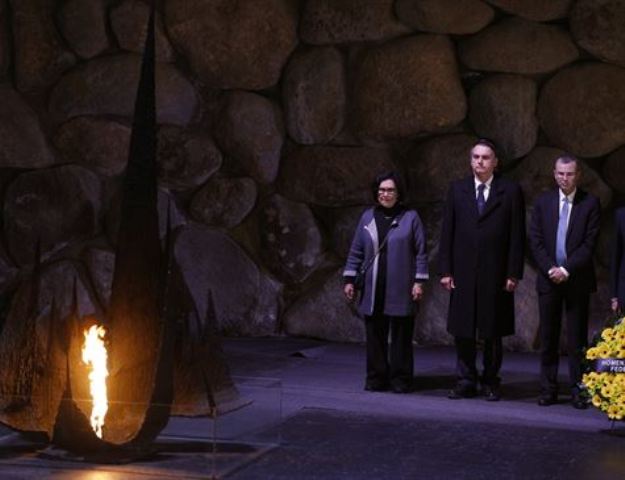 O presidente brasileiro Jair Bolsonaro colocou flores no Hall da Memória do Museu do Holocausto (Yad Vashem), em Jerusalém, nesta terça-feira (2). O museu recorda a morte de 6 milhões de judeus no período da Segunda Guerra Mundial (1939-1945).