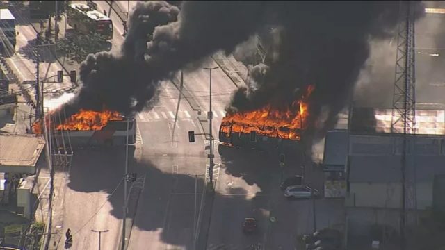 Terror na Zona Oeste: A morte de um miliciano provocou um dia de terror na Zona Oeste do Rio na tarde desta segunda-feira (23). Ao menos 35 ônibus e 1 trem foram queimados a mando de criminosos na região, no que já é o dia com mais coletivos incendiados na história da cidade, segundo o Rio Ônibus. Entre os coletivos queimados, 20 são da operação municipal, 5 do BRT e outros de turismo/fretamento.