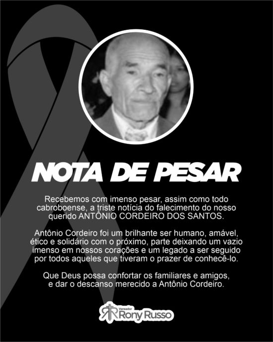 Rony Russo emite nota de pesar pelo falecimento de Antônio Cordeiro dos Santos