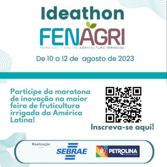 Entre os dias 10 e 12 de agosto, na semana que vem e durante a FENAGRI, o SEBRAE e a Prefeitura de Petrolina realizarão em conjunto um Ideathon, trata-se de uma maratona de inovação que pensará e idealizará negócios inovadores para o agronegócio da região do Vale do São Francisco. Momento único na cidade busca reunir jovens do ensino médio e universitários em 3 dias de seminários, workshops e mentorias com lideranças e referências no mundo da inovação brasileira.