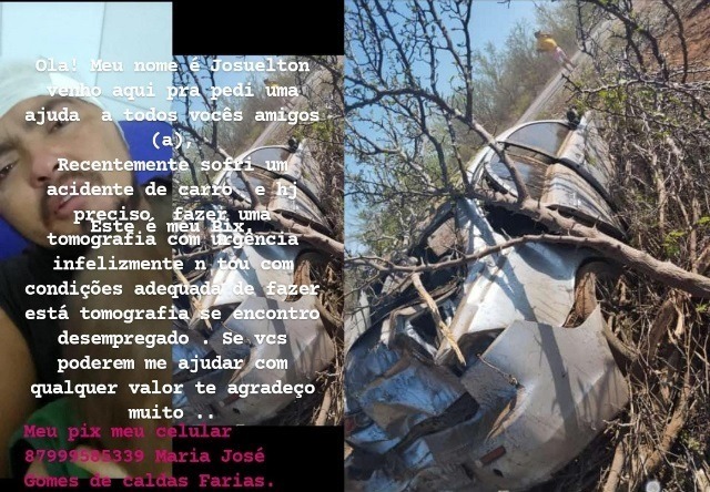 O jovem Josuelton, morador do Distrito de Caraíbas, município de Santa Maria da Boa Vista, sofreu um grave acidente automobilístico quando trafegava pela BR-428 próximo a cidade de Orocó no dia 1º de dezembro. Agora o mesmo está impossibilitado de trabalhar, precisa urgentemente fazer uma tomografia e não está em condições financeira.