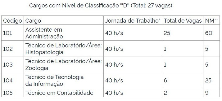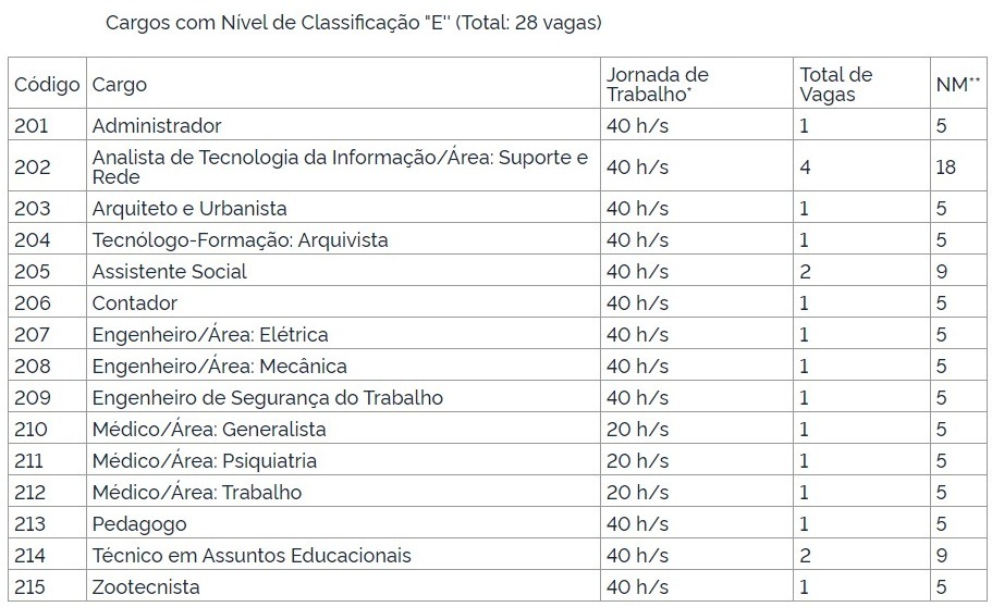 Os cargos estão divididos em duas classificações. A primeira, classificação E, oferta salários de até R$ 4.556,92 acrescido de auxílio alimentação no valor de R$ 658. Já para a classificação D, os salários são de R$ 2.667,19 acrescido de auxílio alimentação no valor de R$ 658.