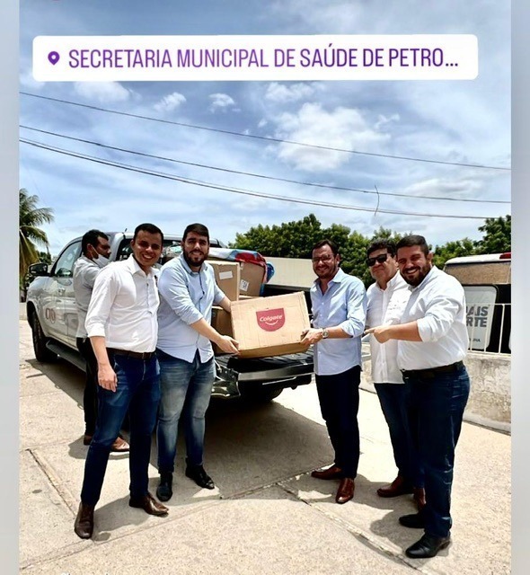 O Vereador César Durando, que também é Cirurgiao-Dentista, o Prefeito de Petrolina Simão Durando, o Presidente do Conselho Regional de Odontologia de Pernambuco (CRO-PE), Eduardo Vasconcelos, em companhia do Superintente Igor Moraes, do Chefe da Fiscalização João Godoy, da Coordenadora de Saúde Bucal Roberta Araújo,do delegado de fiscalização Avelar Amador, além de Cirurgiões-Dentistas da região, realizaram a entrega de mais de 5.000 kits de higiene bucal para os alunos da primeira infância da rede municipal de ensino de Petrolina, no Sertão, nesta sexta-feira (10).