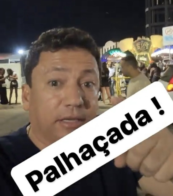 Tô aqui mais uma vez, na entrada do camarote, já fui agredido, tinha um (palavrão) roubando a casa da minha mãe, já falei com o Prefeito em vários dias, e tô aqui fazendo esse registro, não tem uma viatura aqui para garantir a segurança na saída da festa, isso é uma esculhambação, não tem segurança pública aqui, o que está acontecendo é uma palhaçada.” – disse Wenderson.