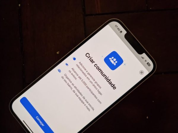 No iOS, o ícone fica na base da tela, bem no centro. Ao tocar nele basta ir para Criar comunidade e, em seguida, “Começar”. Aqui o processo é semelhante aos celulares Android e é preciso adicionar nome da comunidade, a descrição e a foto de perfil. Para concluir basta clicar em Seguinte e adicionar os grupos.